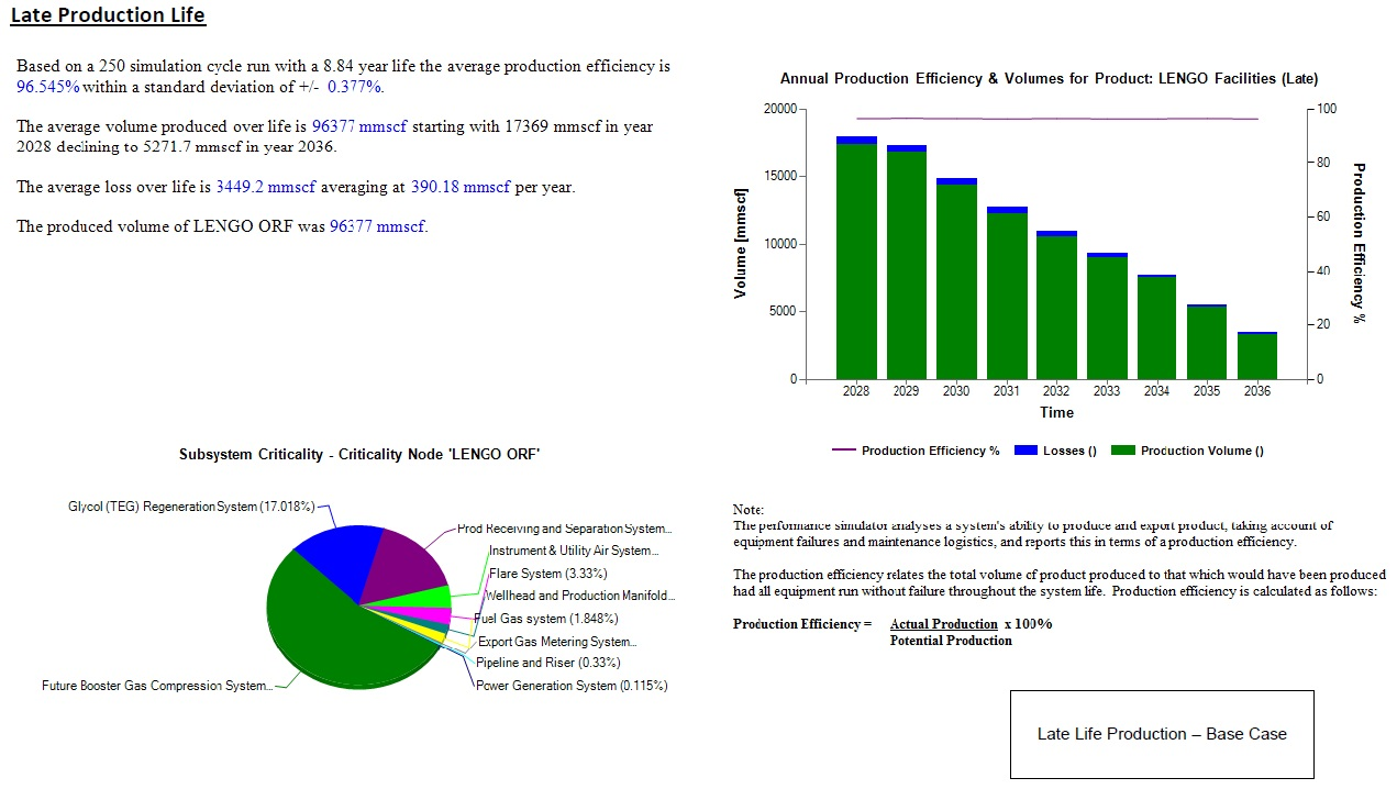 Synergy conducted the Reliability, Availability and Maintenance (RAM) Study for the field development, covering the production and utility systems identified as essential for production availability of the Lengo facilities.
